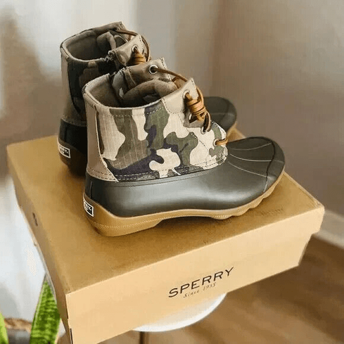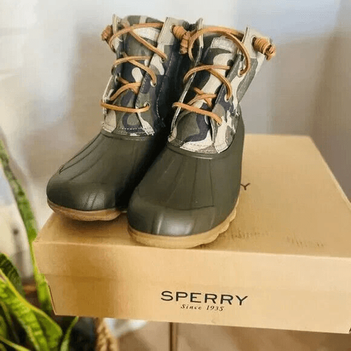 Primary image for SPERRY TOP-SIDER Syren Gulf Camo Duck Toe Boot, Rain Boot, Green Camo, 8.5, NWT