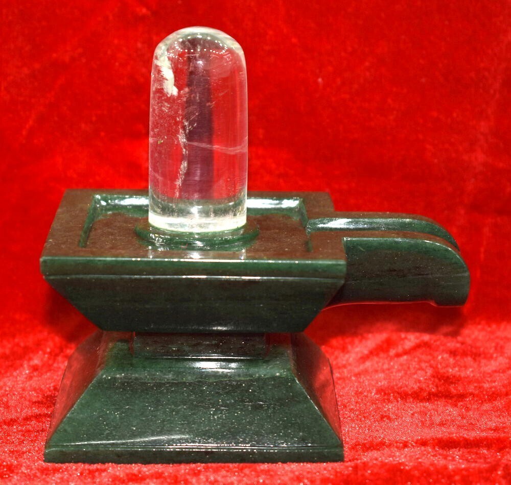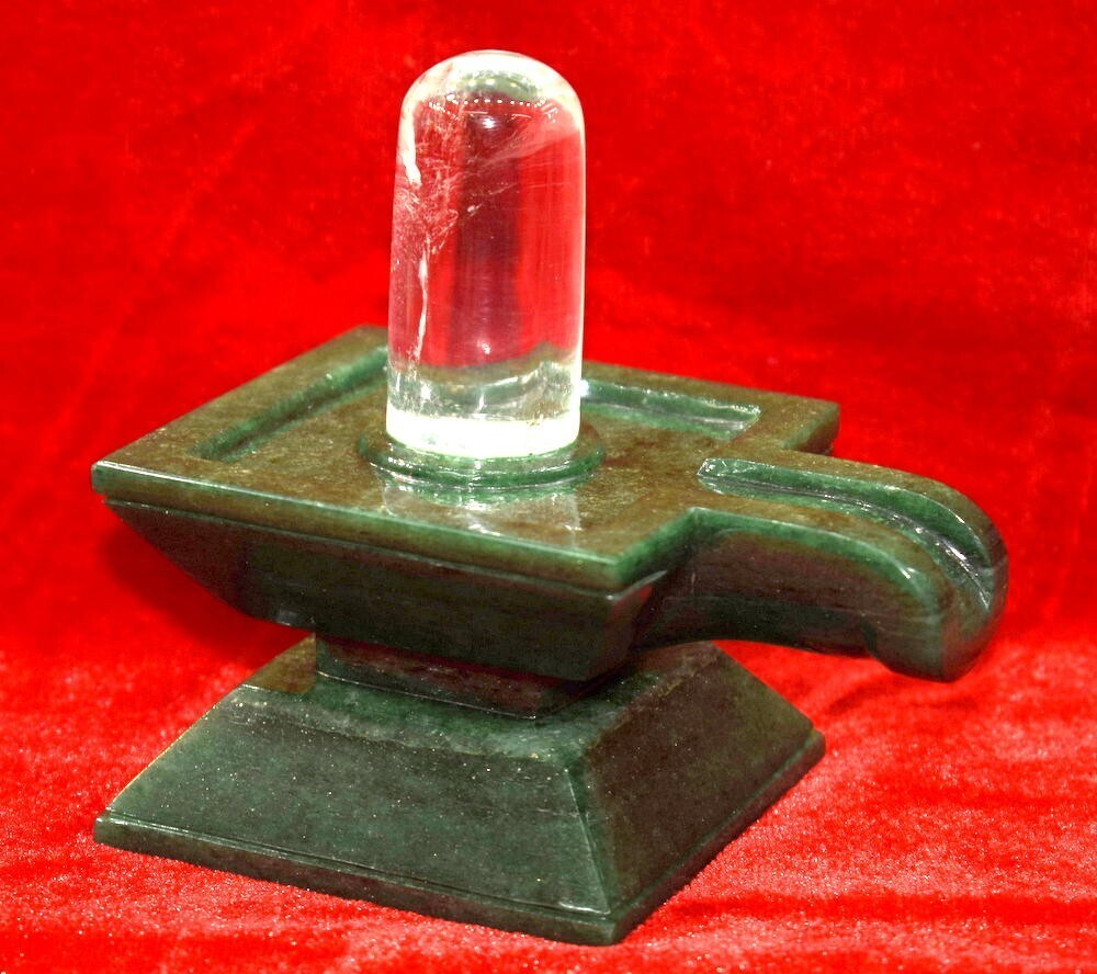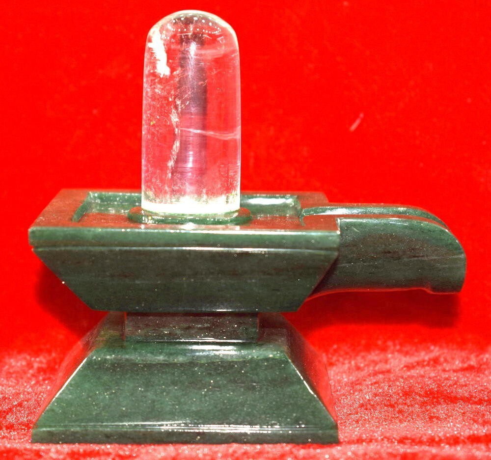 Sacred Sphatik Shivalingam with in green jade yoni base is made natural flawless sphatik (crystal quartz) . Crystal shivling harmonise the aura around us and remove the negative energy, therefore when we place this crystal shivling , in our home or office, the place is purified by the power of crystal and the blessings of lord shiva is attained. Shiva is duly worshipped in this form only doing Abhishek.