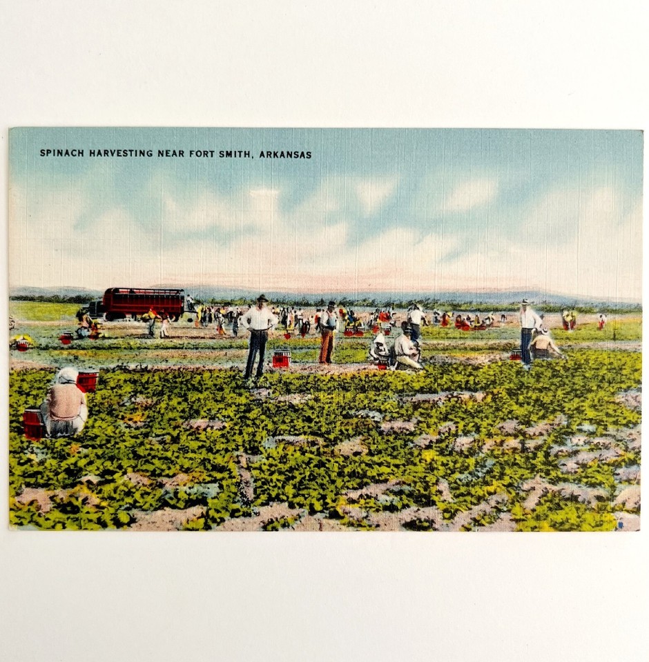 Spinach Harvesting Farm Postcard Fort Smith Arkansas 1943 PCBG11A