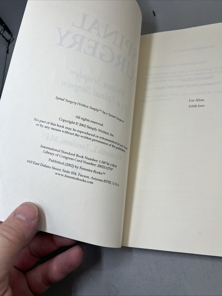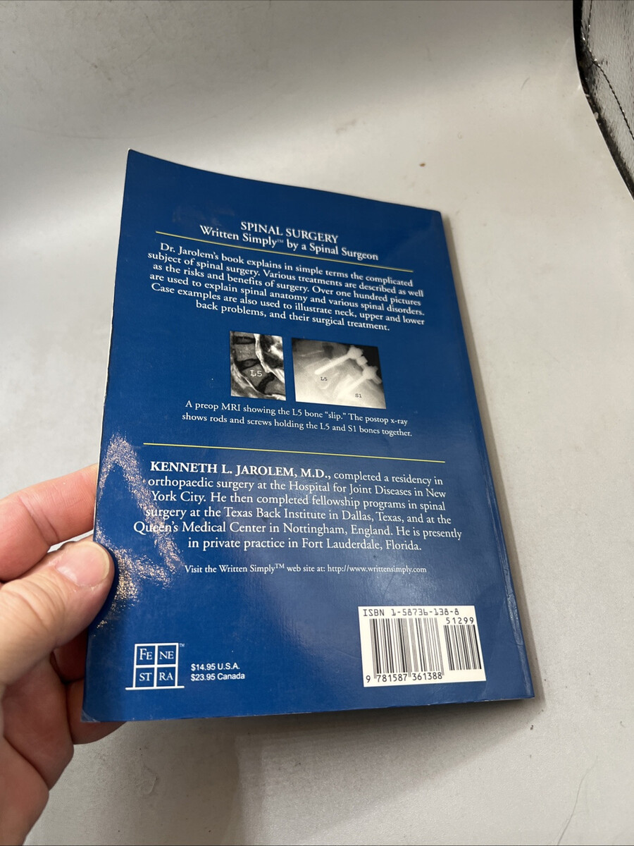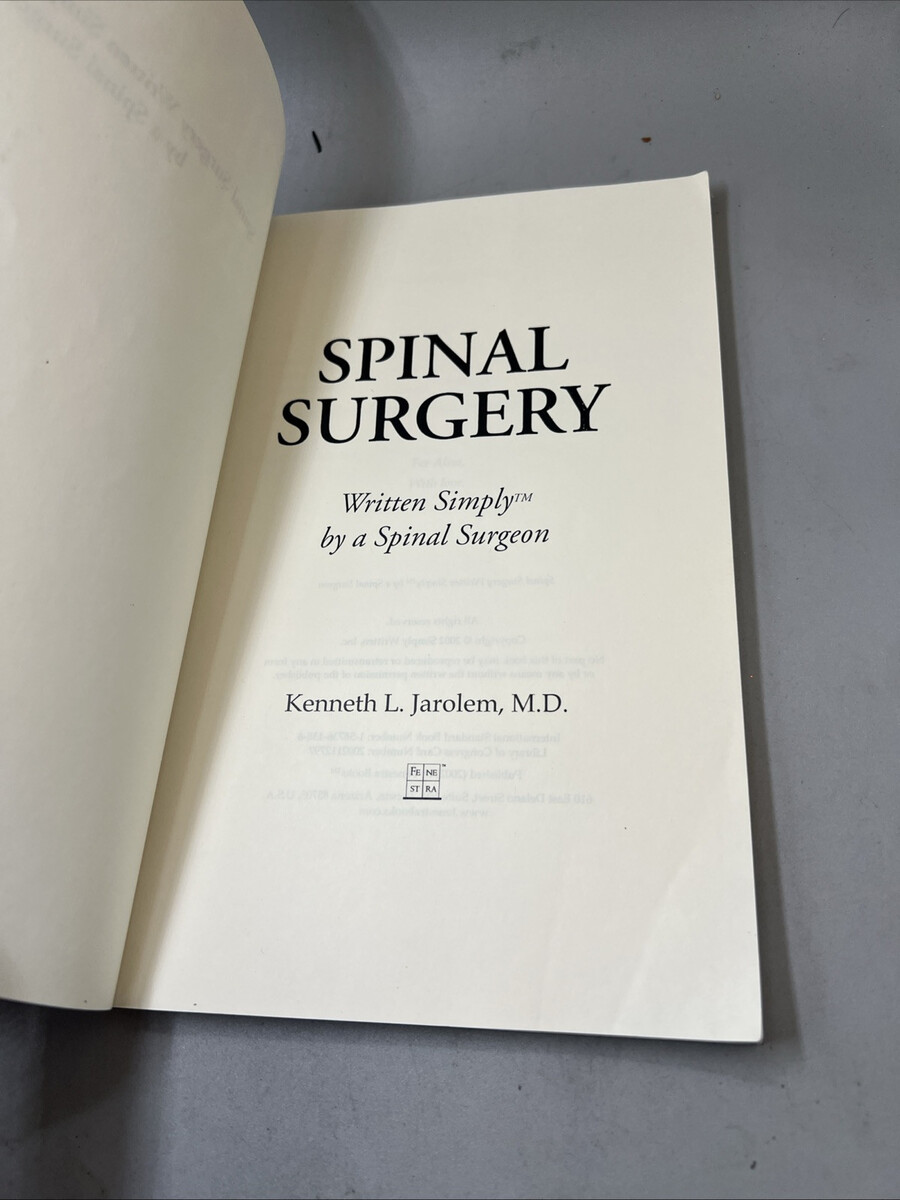 - Spinal Surgery Written Simply by a Spinal Surgeon by Kenneth L. Jarolem...