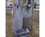 A chilling figure emerges from the shadows, the Gatekeeper beckons you closer with its eerie glow. This animated Halloween prop will send shivers down your spine with its life-size presence and unsettling movements. The tattered grey shroud and gaping holes create a truly spectral appearance, while the flickering lantern held aloft casts an ominous light, guiding unsuspecting visitors into your haunted domain. Experience the thrill of Halloween like never before as this imposing guardian silently watches over your festivities. Perfect for a haunted house, spooky yard display, or to welcome trick-or-treaters to your door this Halloween. Keywords: Halloween decoration, Animated prop, Yard decoration, Haunted house prop, Spirit Halloween, The Gatekeeper, Lantern prop, Spooky decor, Outdoor Ha