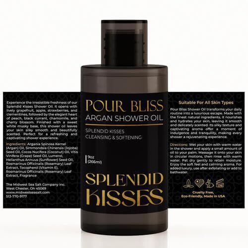 - Splendid Kisses Pour Bliss Cleansing Argan Shower Oil - 9oz, With Label