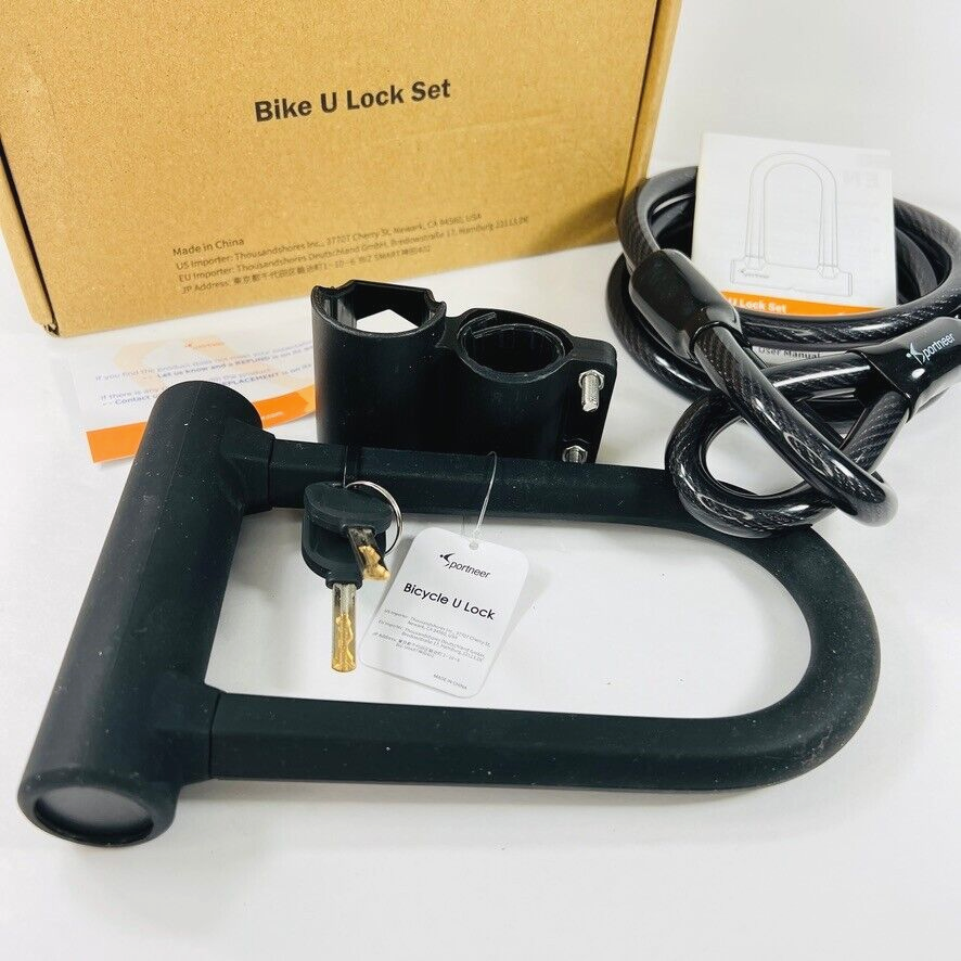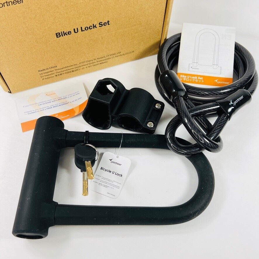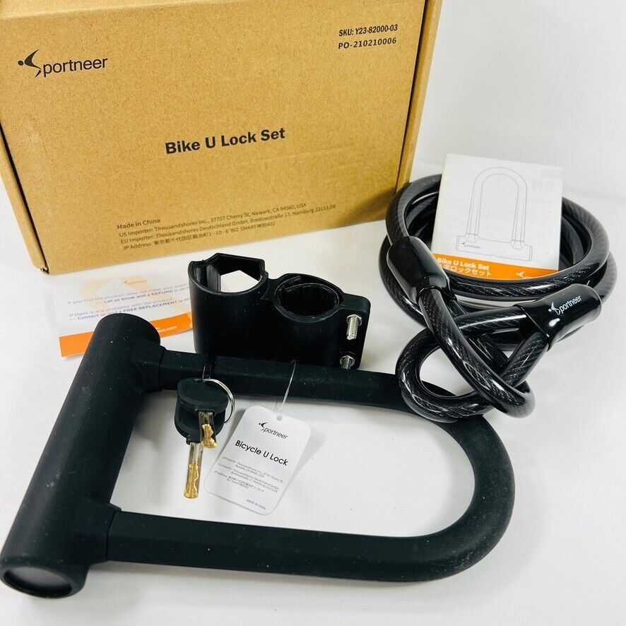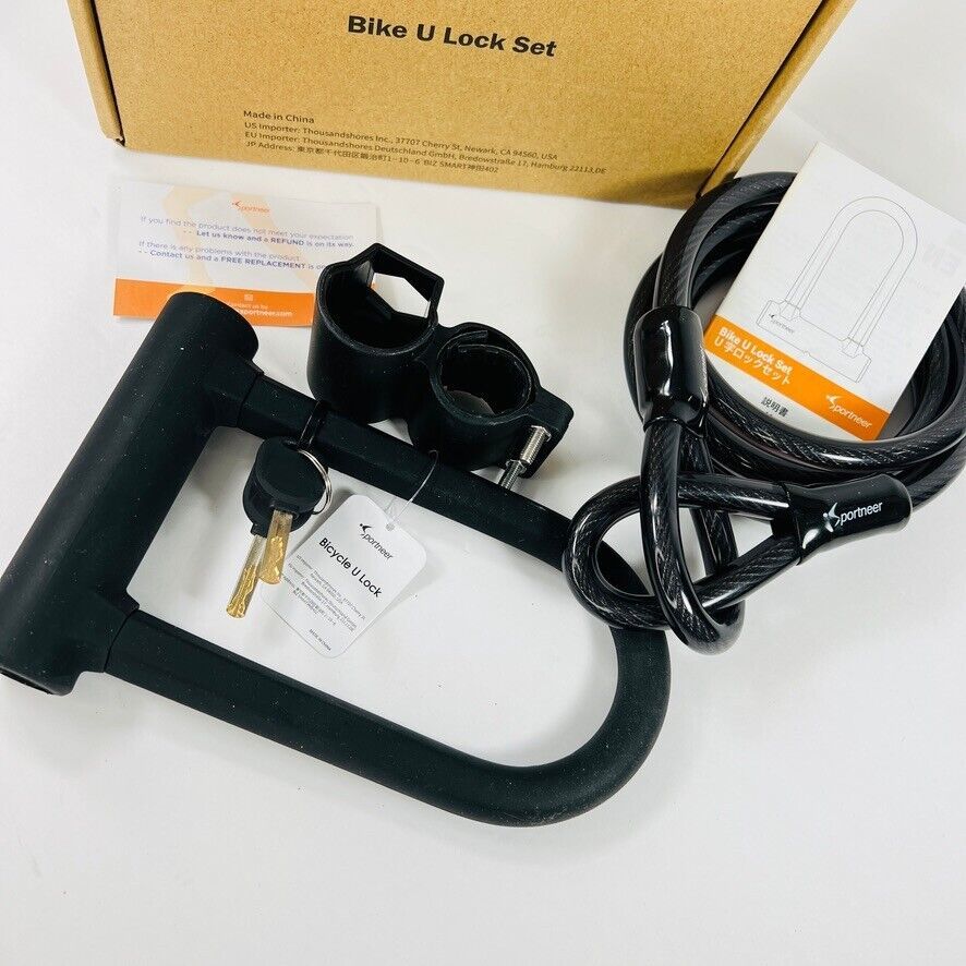 - Sportneer Bicycle Lock Set Heavy Duty U Lock 5 Ft Security Steel Cable Keys Bike