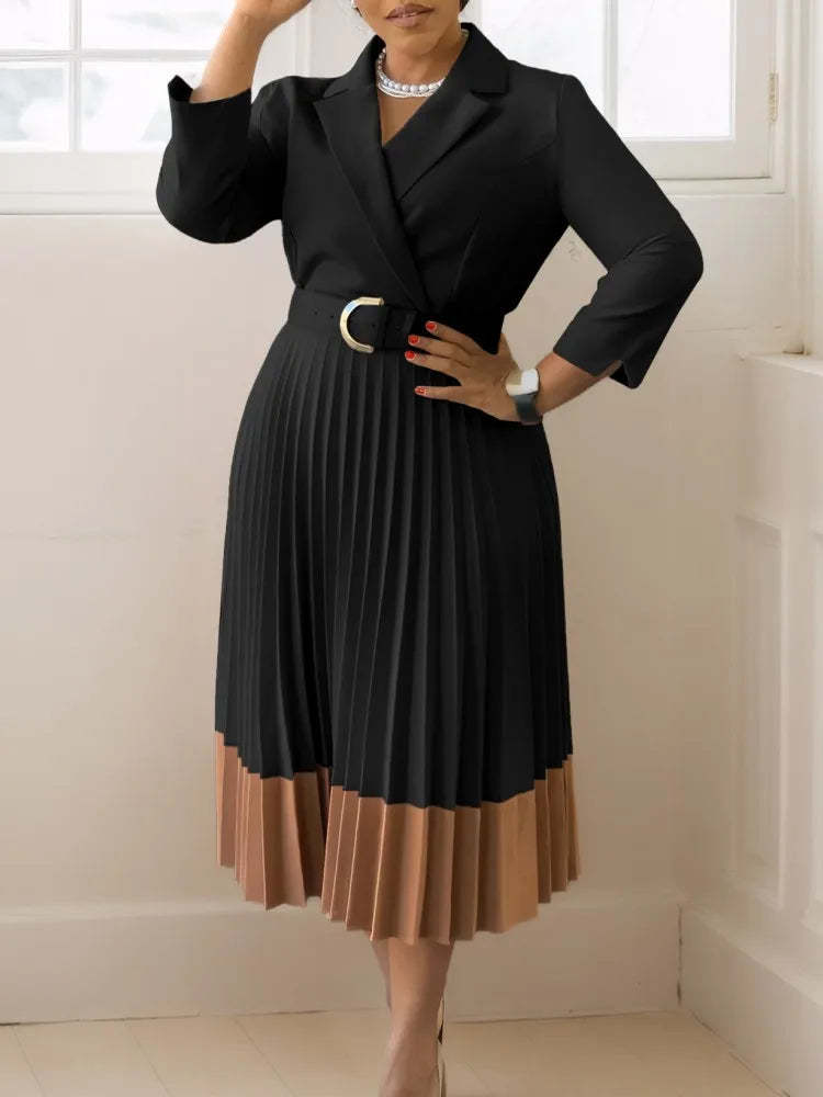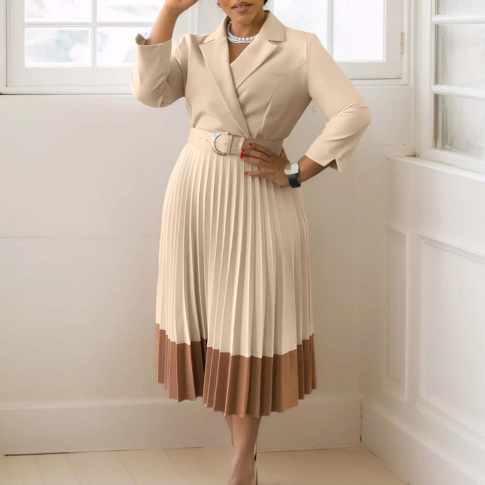 This dress boasts a slight stretch and is crafted with high-quality polyester, making it an essential piece for any stylish woman's wardrobe. The fabric is delicate and luxurious, elevating the overall look and feel of the dress. With a sophisticated V-neckline, long sleeves, and a flattering A-line silhouette, this dress is perfect for the office or any elegant occasion. The intricate draping adds a touch of artistry and sophistication, while the mid-calf length exudes a sense of refined elegance. This gown is made from premium materials and is exclusively designed for the discerning fashionista. Gendered for women, this dress exudes femininity and elegance, making it a must-have for the stylish woman. Imported from Mainland China, this dress is of the highest quality and reflects the latest fashion trends. With a natural waistline and a regular fit, this dress is both comfortable and stylish. The autumnal color palette and pullover style make this dress perfect for the upcoming season. Elev