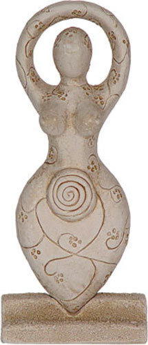 This gypsum cement goddess figurine, represents the celebration of Life. The spring goddess carries the message that when women unite they will have the power to transform the world.