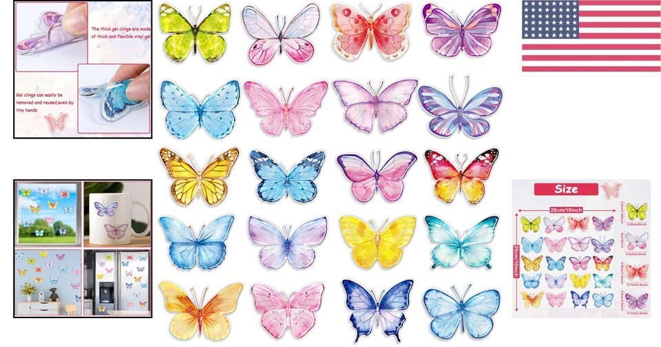 Includes 20 pieces of beautifully designed butterfly gel clings.