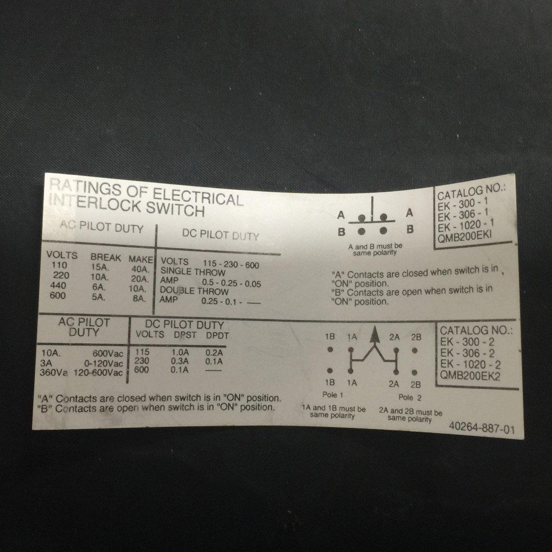 SQUARE D EK300-2 INTERLOCK SWITCH SERIES D2