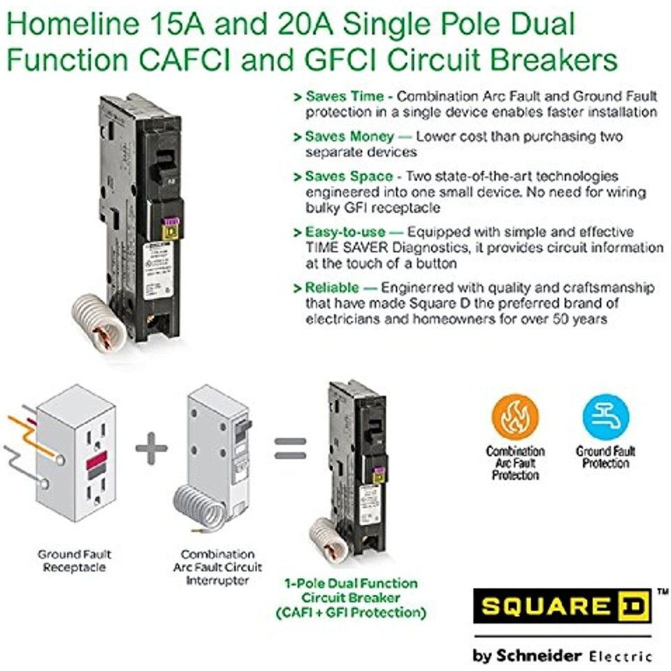 - Square D - HOM120DFC Homeline 20-Amp Single-Pole Dual Function Circuit Breaker,