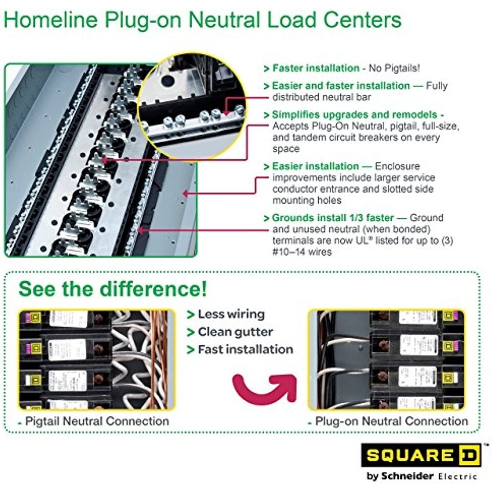 Includes a fully distributed neutral bar, allowing for the installation of Homeline Plug-on Neutral combination arc fault breakers on any space