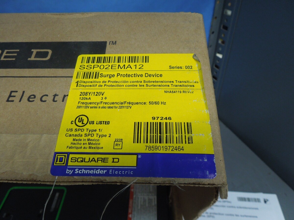 - Square D SSP02EMA12 SurgeLogic Surge Protective Device 120kA 208Y120V 3p Surplus