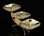 Product description: Elevate your entertaining experience with this exquisite Square Three-Tier Fruit Plate Stand by Interoknack. Masterfully crafted from high-clarity glass and gold-plated metal, this elegant serving piece features three 7.1-inch square plates, each adorned with decorative etched patterns and sophisticated filigree borders. Standing at 20.5 inches in length, 7.1 inches in width, and 10.6 inches in height, this ornate stand creates a stunning visual display while remaining practical for any gathering. The artistic stacked arch design showcases your desserts, fruits, or snacks with palace-worthy presentation, making it perfect for living rooms, receptions, tea tables, or upscale lounges. The intricate gold detailing and layered heights transform ordinary serving into a luxurious experience, creating a statement centerpiece that enhances both modern and traditional decor. Ideal for those who appreciate fine craftsmanship and wish to impress guests with both function and artful presentation.
