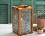 Here is a new lantern called the Theodore Lantern, this is made of wood and metal and the wood framing around the metal is distressed and has marks and spots on it and are made this way, the metal has a punched hole design all around it and a tin finish, it is a rectangular shape and measures 12 inch high by 7 inch wide and 6 inch in diameter, it has attached metal handle that goes up and down, so could also hang if you did want to sit it. Nice unique lantern, and i am including a new rustic battery timer pillar candle with this, is 7 inch high by 3 inch wide and has 6 hour timer, it is made of plastic and has a distressed burgundy washed finish and does have some chips in finish, but is how i received them, so you get the lantern with candle and candle fits down inside lantern nicely as you see in my pictures, and also check out my many other nice lanterns and decor and lighting i carry.