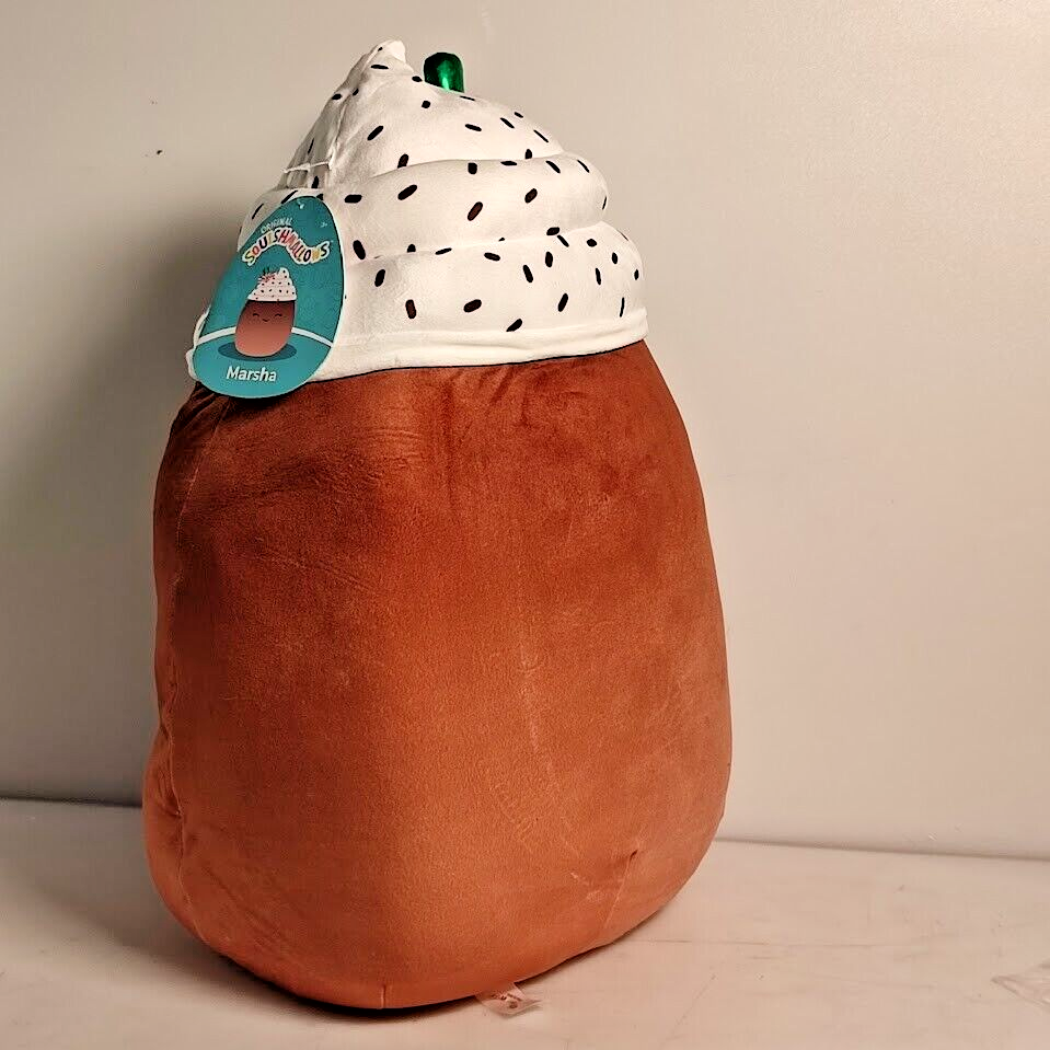 Marsha the Peppermint Hot Chocolate is a brown Squishmallow.