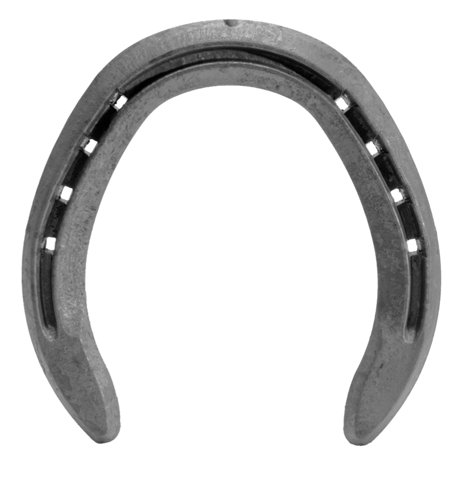 The St.Croix Hind Eventer Horseshoe is designed to provide the protection and support of a wide webbed shoe with the breakover and traction of a rim shoe. The heel shape allows for a tight fit while still providing enough material for support and studs when required. The front and hind shapes typically require minimal shaping, and they are punched for a CH5 nail.