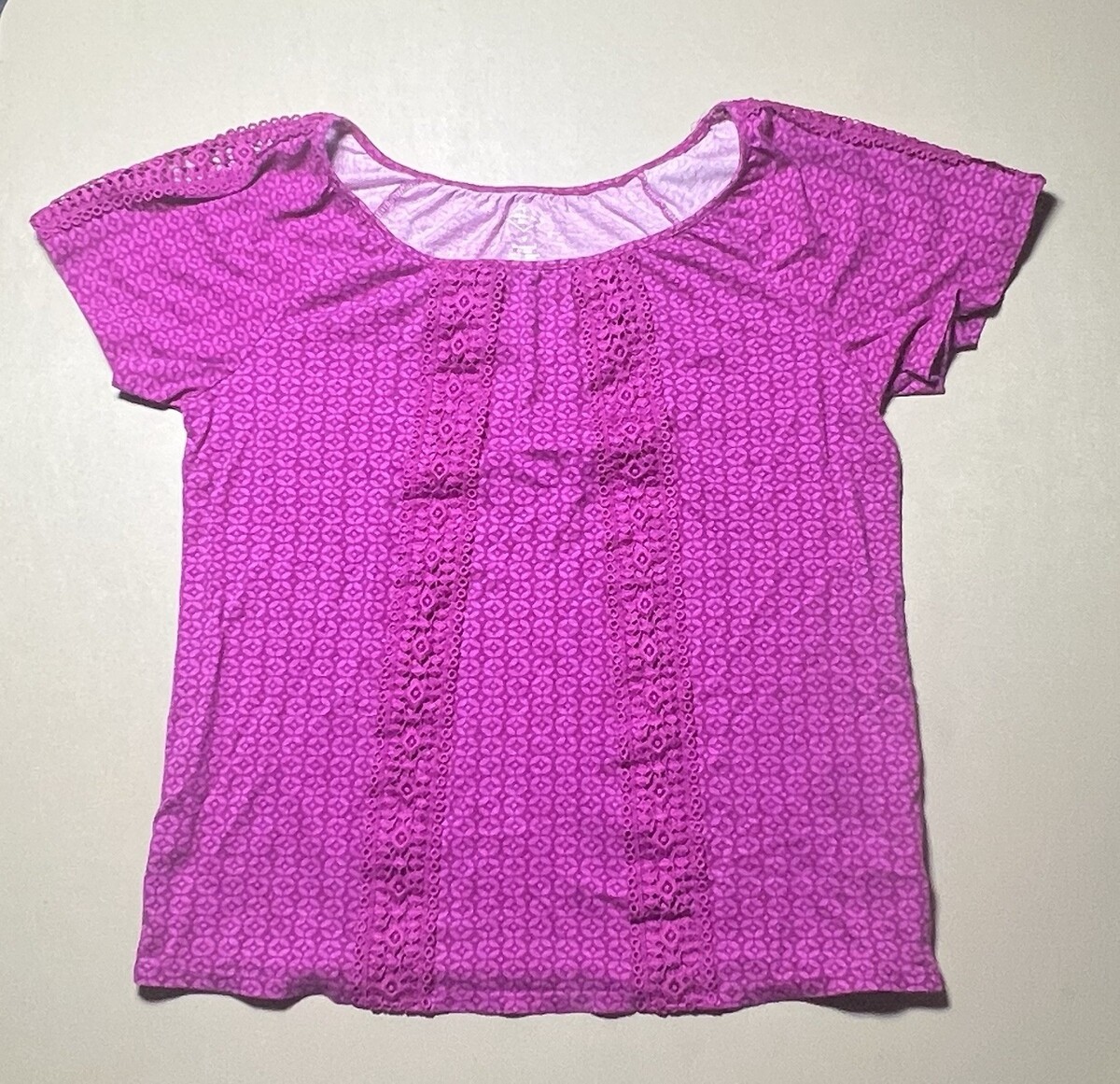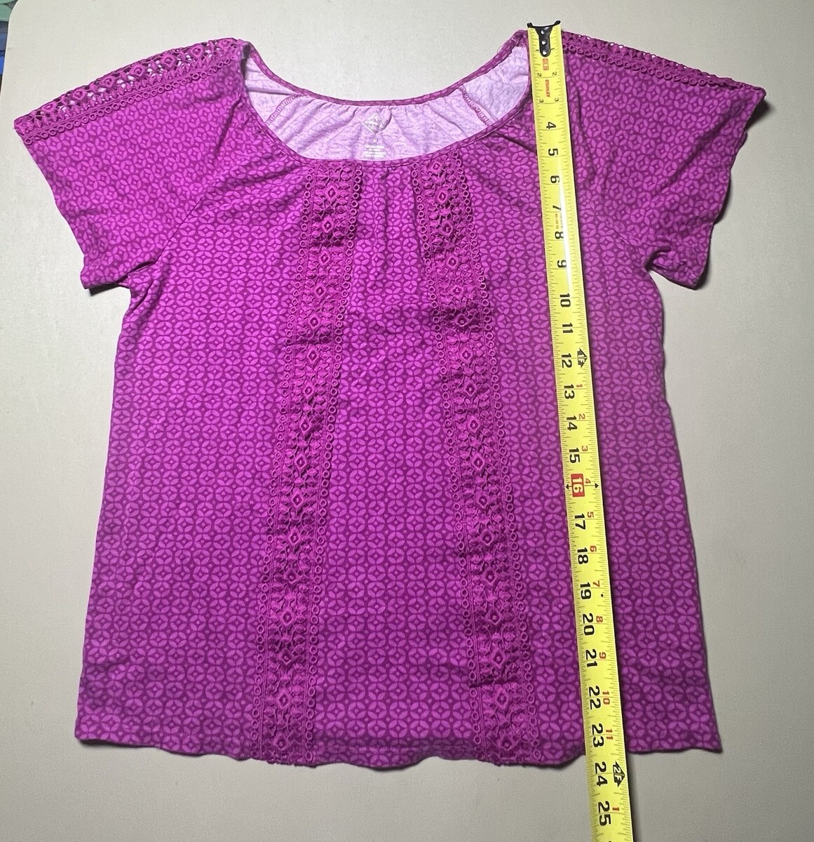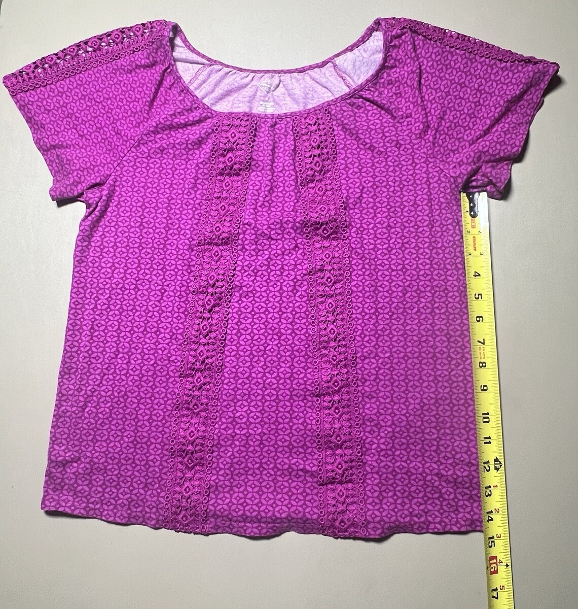 St Johns Bay Purple Top With Crochet Trim And Pattern Design Women’s M