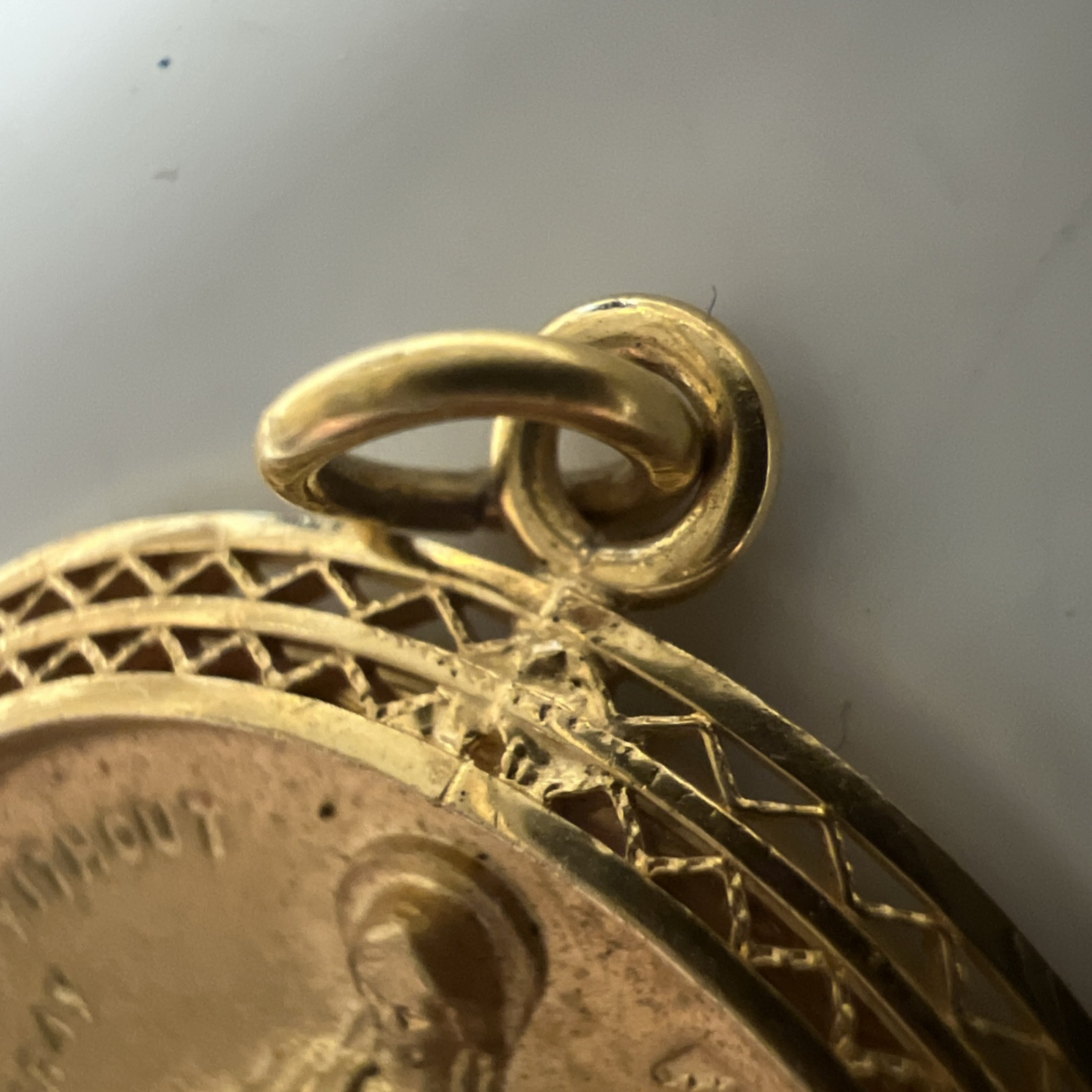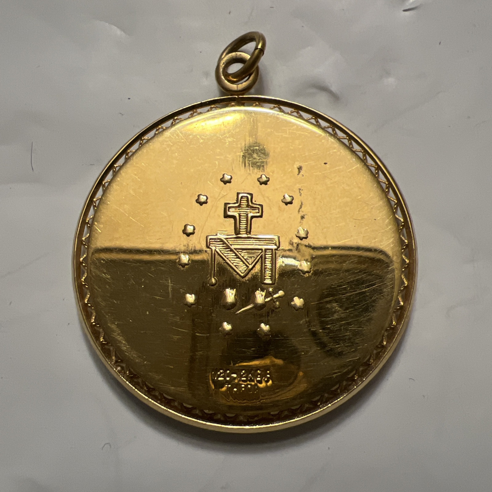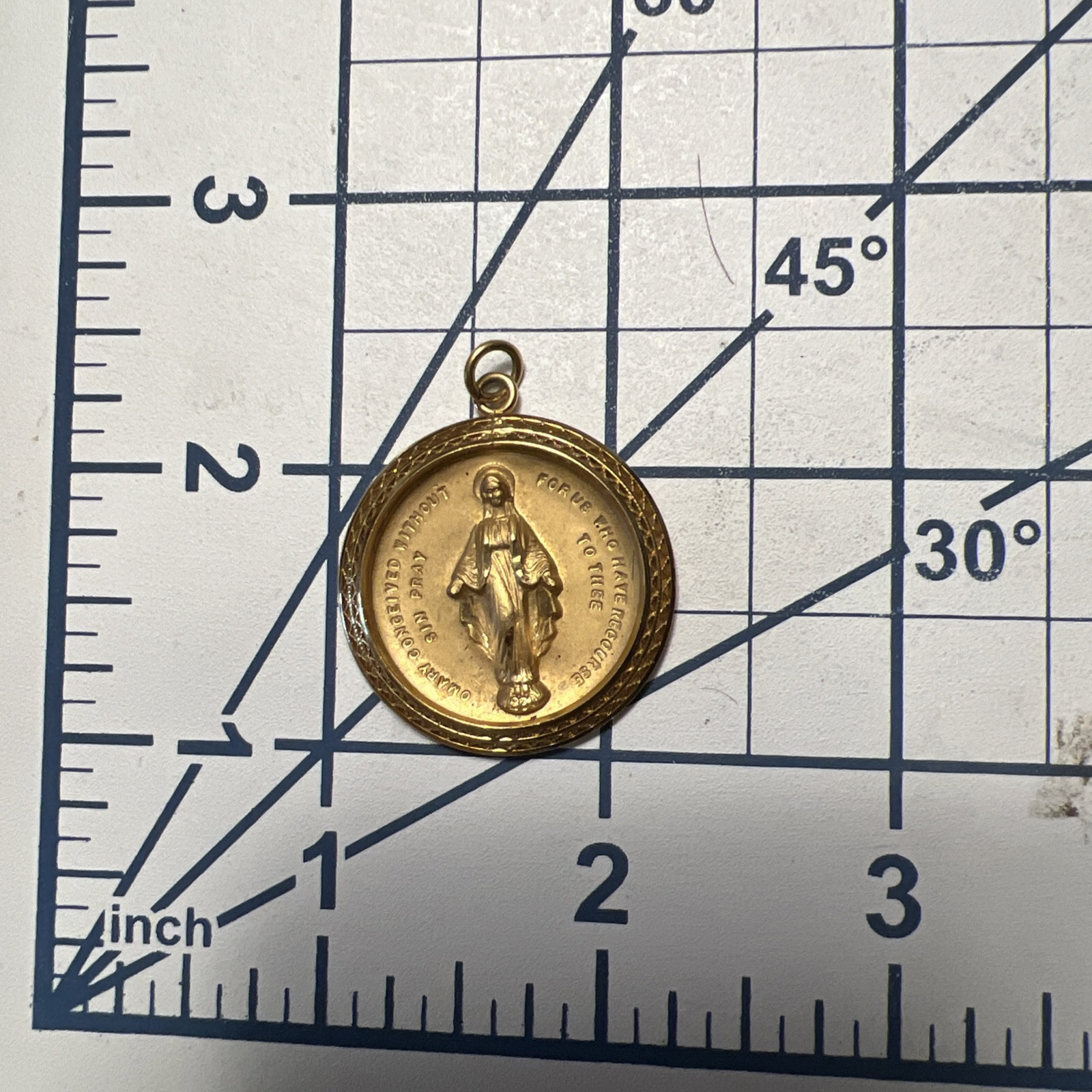 The St. Mary 1/20 12KGF Pendant is a religious medal featuring an image of St. Mary, indicating its connection to Christianity. This pendant is not handmade and has not been modified, making it a commercially produced item. The use of 12KGF in the title suggests that the pendant is made with 1/20th of 12 karat gold-filled materials, adding a touch of luxury to this religious accessory.