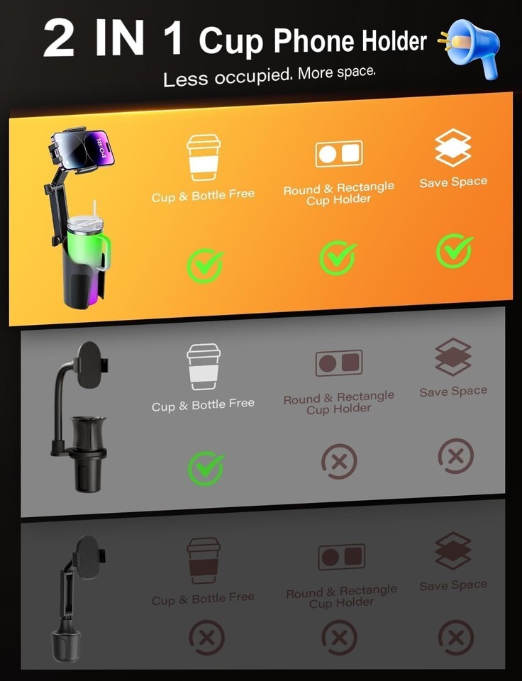 Don?t settle for less when it comes to enhancing your driving experience. Embrace practicality and sophistication today by securing your 2-in-1 Car Phone and Beverage Holder now!