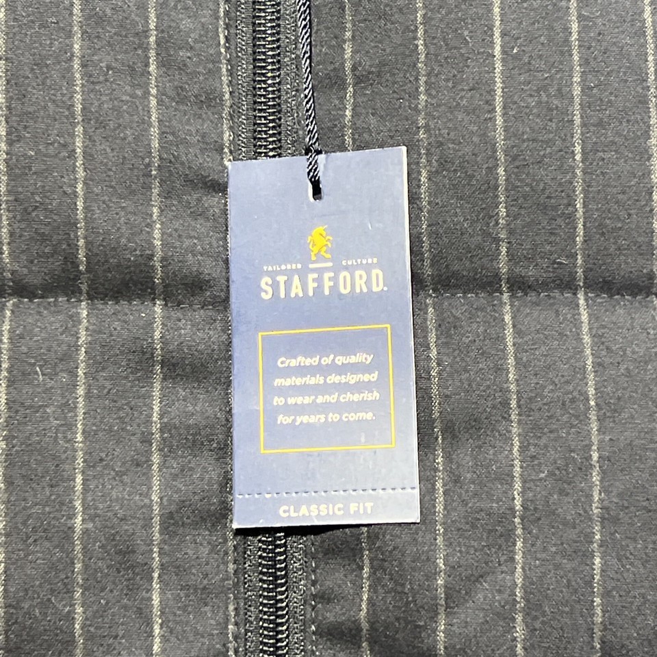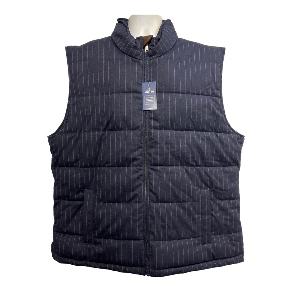 - Stafford Vest Mens XXL Quilted Blue Pin Stripe Full Zip Outdoor Preppy Casual