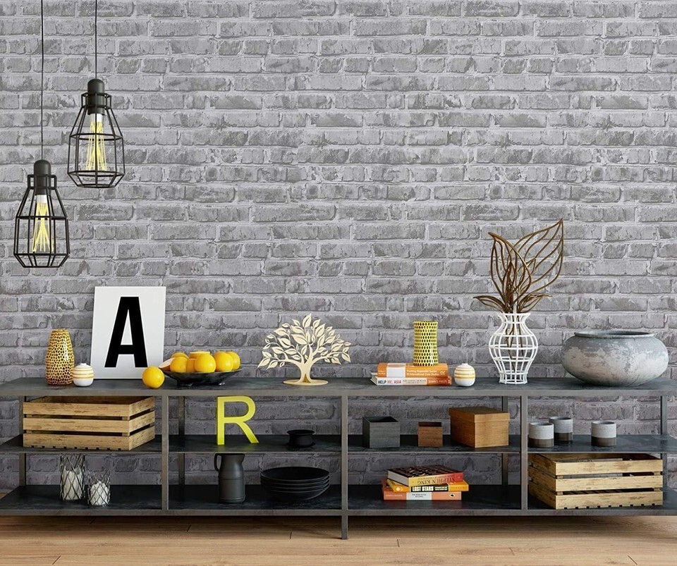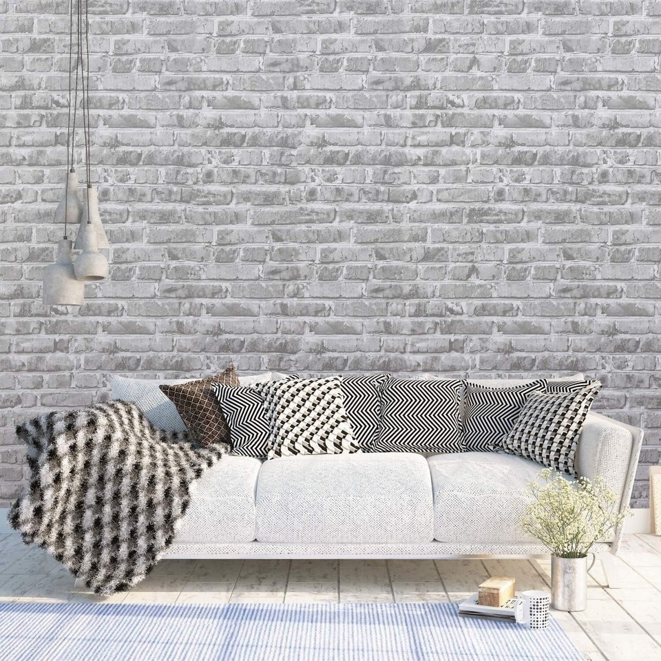 Stain Resistant Vintage Grey Brick Wallpaper, Self-Adhesive 17.7" x 197" Roll