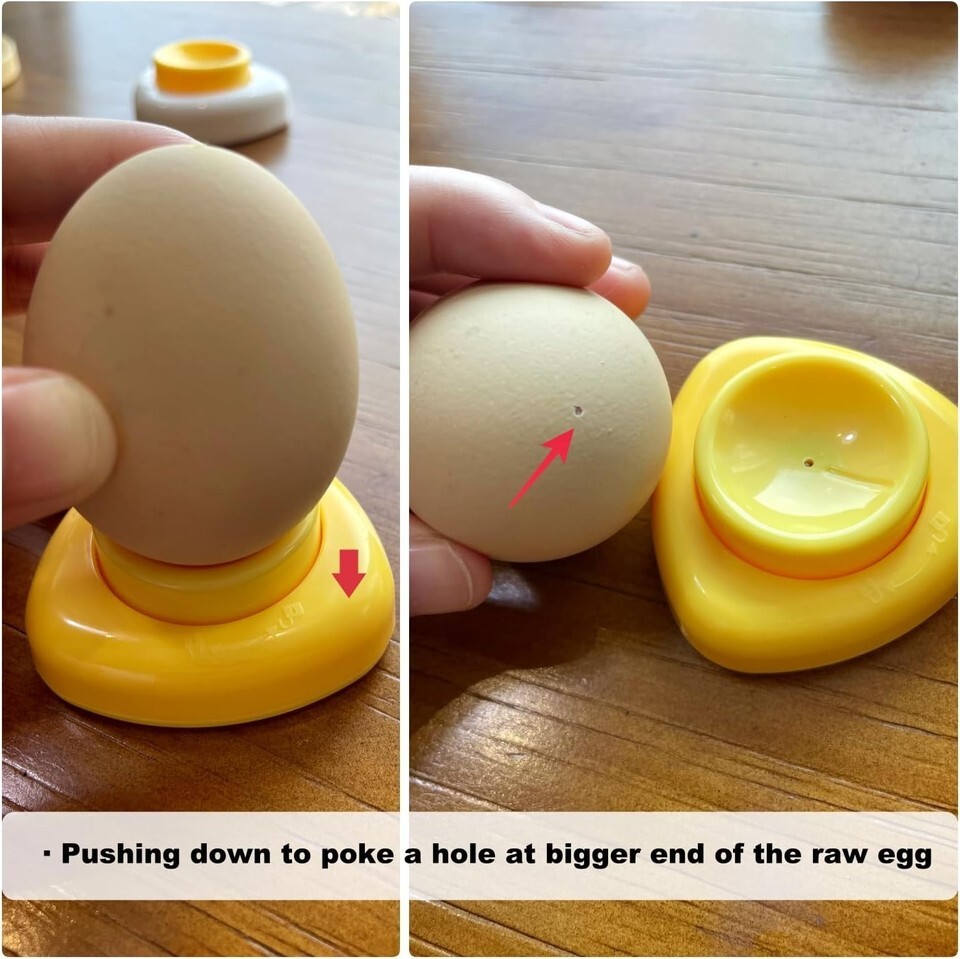 Helpful Tips: Always pierce the egg's larger end, press the egg onto the pin for optimal results, and use raw eggs for best boiling outcomes.