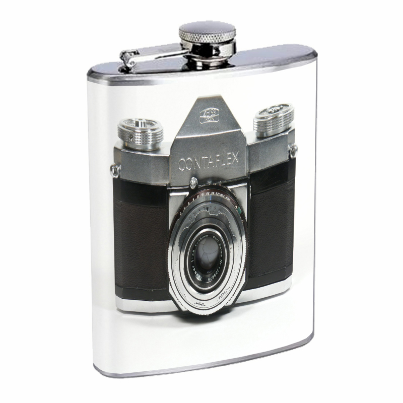 - Stainless Steel Flask 8 oz Vintage Camera Design Silver Drinking Whiskey