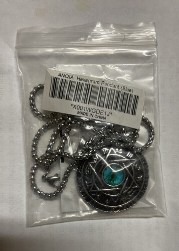 This stylish 316L stainless steel hexagram pendant necklace features a blue center ?eye? design with engraved symbols. Includes a matching stainless steel chain. Durable, tarnish-resistant, and great for everyday wear or cosplay.