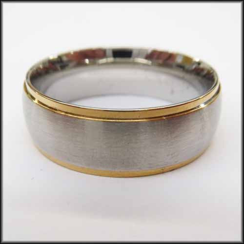 Stainless Steel Stamped High Polished Gold Edged Ring 8mm