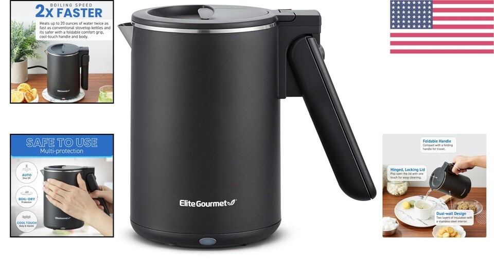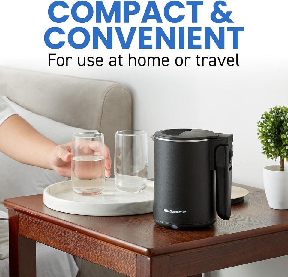 Modern Design: The kettle's .6L capacity, cool-touch matte finish, and retractable handle make it ideal for small spaces such as RVs, dorm rooms, and travel.