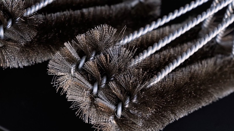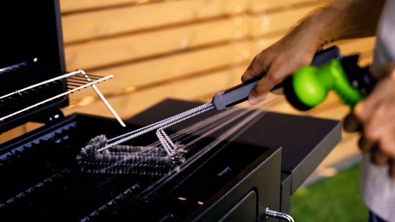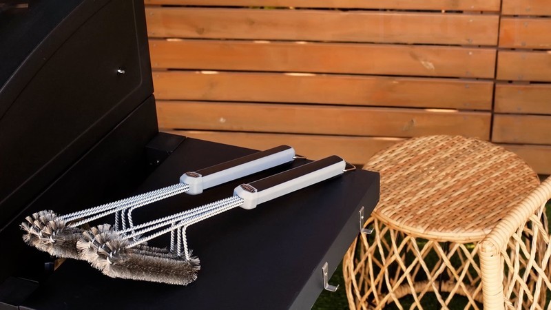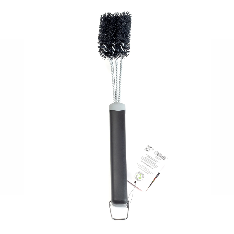 - Stainless Steel and Nylon 3-Head Grill Brush, Black & Gray