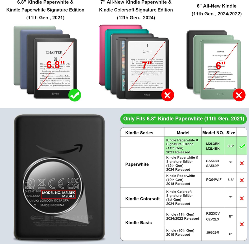 Designed exclusively for 6.8" All-New Kindle Paperwhite and Kindle Paperwhite Signature Edition E-Reader (11th Generation - 2021 Release). Not fit prior generation Kindle devices.