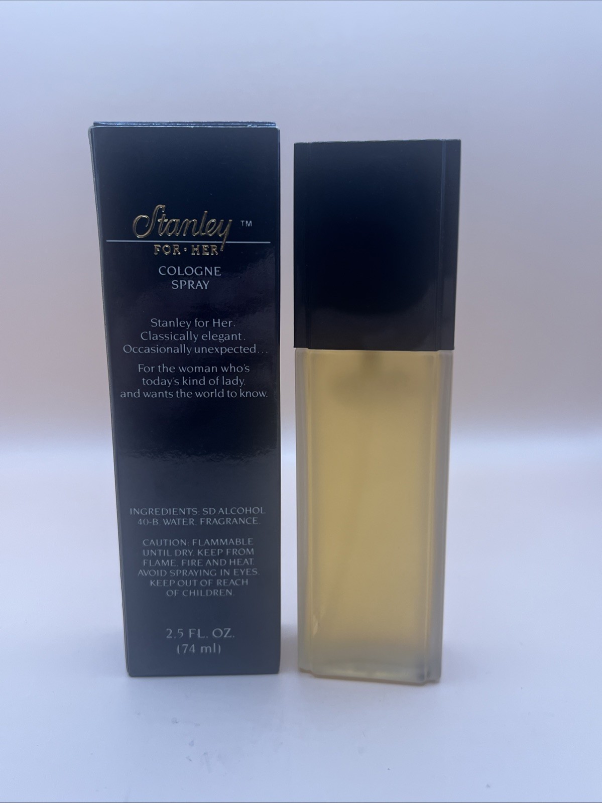 Vintage Stanley For Her perfume, 2.5 oz spray bottle, new in box with original packaging. This elegant floral and powdery fragrance was produced by Stanley during the 1980s, and the packaging design with the pearl necklace motif reflects that vintage era. The batch code 802 is printed on the box. Bottle and box are in excellent vintage condition with only light shelf wear from age. The perfume inside appears unused and full as shown in the photos. This is a discontinued vintage perfume and is sold as-is. The fragrance may have changed slightly over time due to age and storage. Contents are not guaranteed for wear. Offered for collectible and decorative purposes. Please review all photos carefully to confirm condition before purchasing. Ships carefully packaged with tracking. Delivery timelines are determined by the carrier and occasional delays are outside of my control.