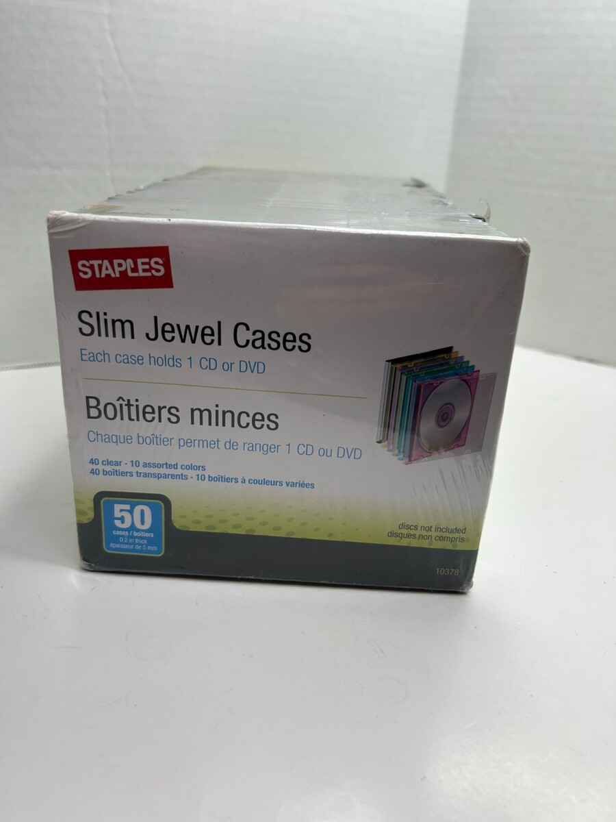 Staples 50 Pack Slim Transparent Jewel Cases for CD Discs DVD - Color + Black