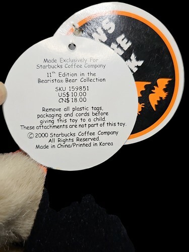 UP FOR SALE: Starbucks Coffee Bearista 2000 Bear Plush Halloween Witch Glows In The Dark Rare PLEASE REFER TO ALL PHOTOS FOR A BETTER VISUAL DESCRIPTION OF THE ITEM *Vintage and secondhand items may have flaws. Please review item(s), description and picture(s). I do my best to research and describe the items accurately, but I am not an expert on all of the items I sell. Unless specified in the listing, all items are sold AS-IS AS-SEEN in photos* All of My Items Come from a Smoke Free Home and have been cleaned per's standards I do Ship everyday Monday - Saturday I am always happy to combine shipping for you--just send me a message Feel Free to Visit My Store and Browse Through My Other Listings as I am happy to combine shipping for you. Please contact me with any issues prior to leaving negative/neutral feedback or low detail ratings, as I will always do my best to solve any problems that may come up! If you have any further questions, please feel free to message me Any props that are used in the taking of the photos are not included. Only the item/items in the title of the listings are being sold