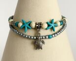 Starfish and Turtle Beaded Bracelet ? Silver, Turquoise, and Ivory Beads ? Beach Boho Layered Style ? 3.25? Diameter