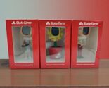 The bobblehead figures are packaged in their original packaging, making them unique additions to any collection of collectible figures and bobbleheads. This set offers a fun and whimsical touch to any space, perfect for fans of State Farm and collectors of charming bobblehead figures.