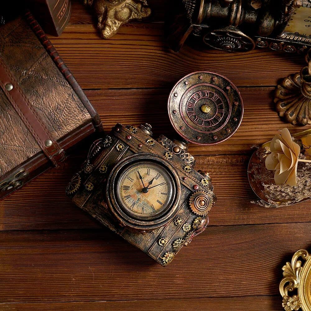 Steampunk Vintage Camera Shelf clock | Retro Antique Table Clock with Roman Nume