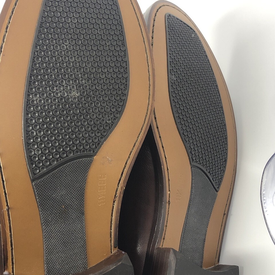 The Steeple Gate Brown Men?s Leather Loafers in size 11 1/2 EEE are a stylish and high-quality choice for formal occasions. Made in Brazil, these loafers feature a sleek brown leather upper and a comfortable EEE width, perfect for those who need extra room in the toe area. The classic design and craftsmanship of these dress shoes make them a versatile option for any man's wardrobe.