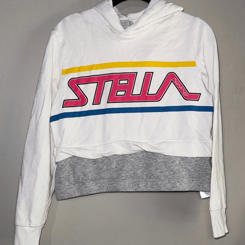 - Stella McCartney White Hoodie with Pink, Yellow, and Blue Accents