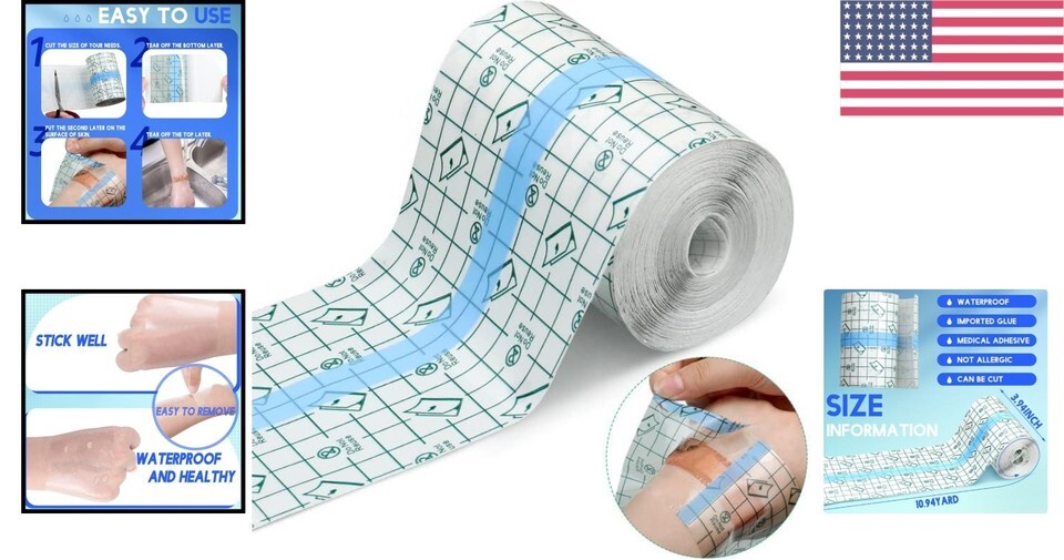- Sterile Transparent Adhesive Bandages - Waterproof & Cuttable 4x393.8 Inch
