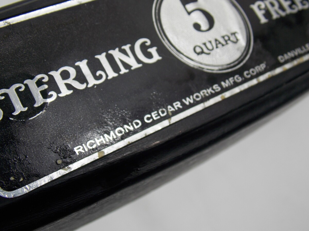 good used hand churn top for the sterling 5 quart, does have a little surface corrosion on metal handle could easily clean off with a wire wheel. as pictured