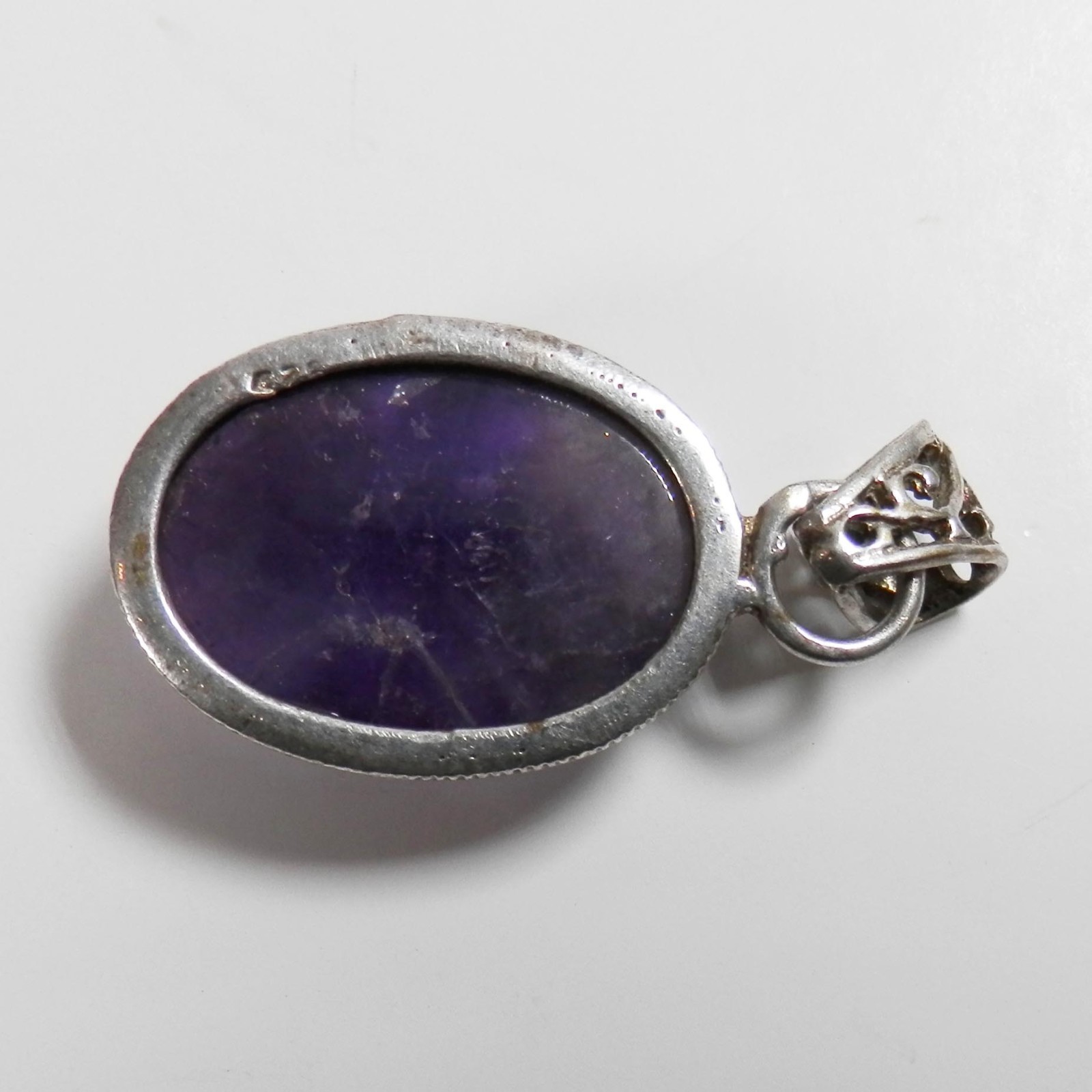 Primary image for Sterling Oval Purple  Amethyst Gemstone Cabochon Pendant Ornate Loop 1"