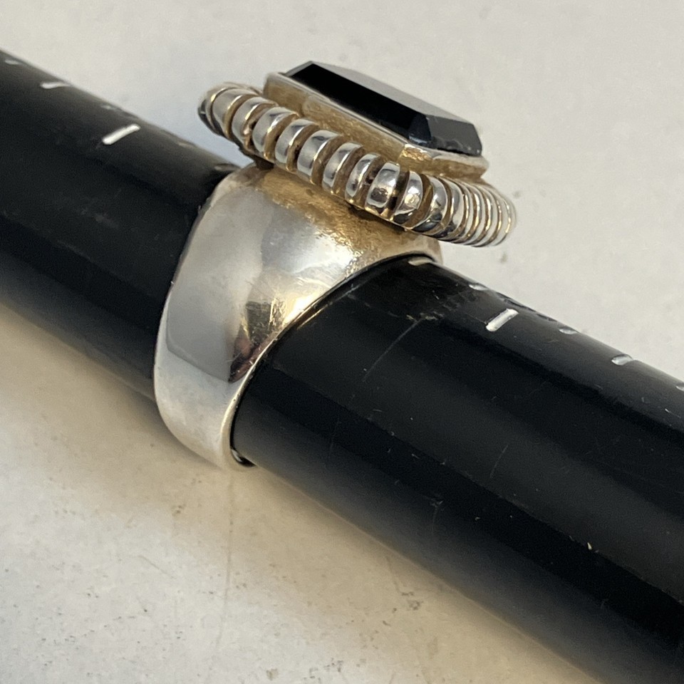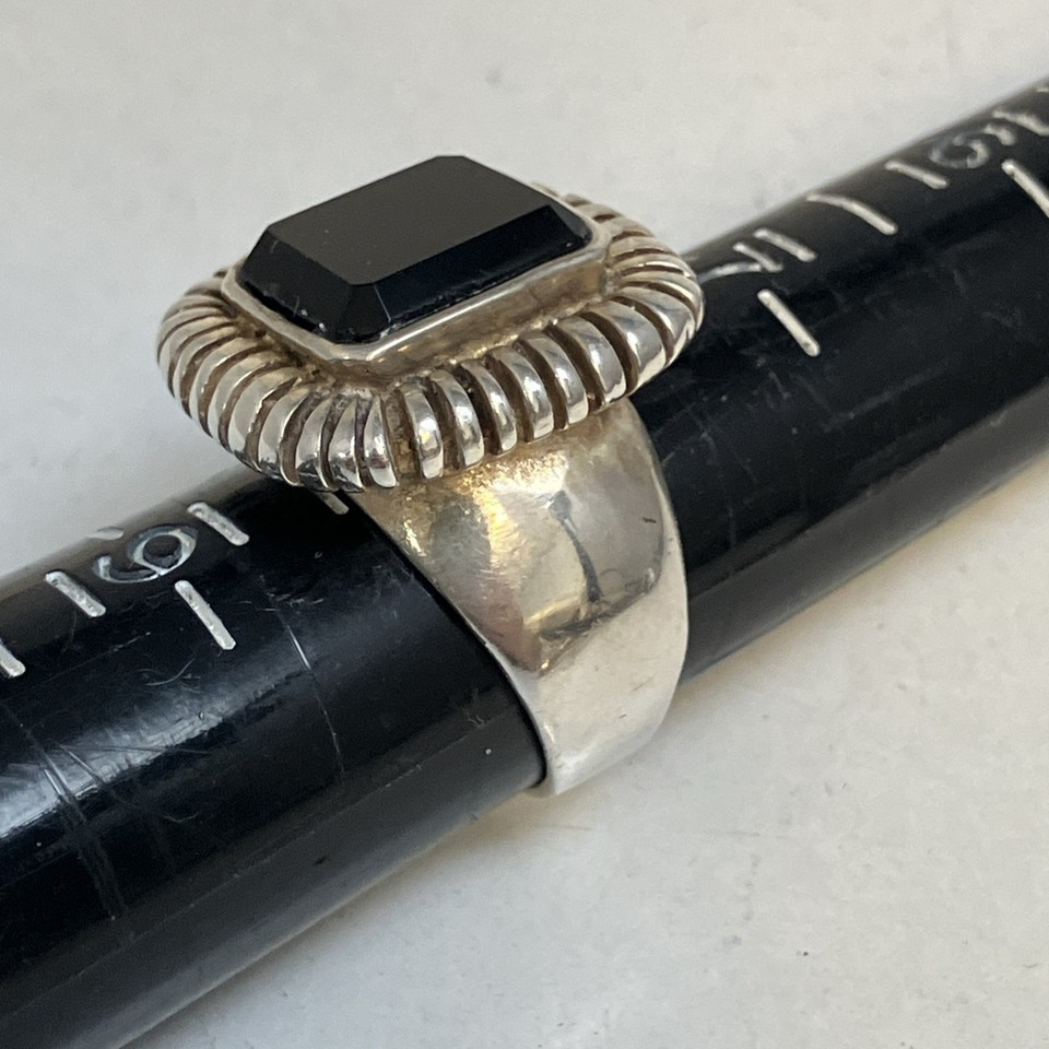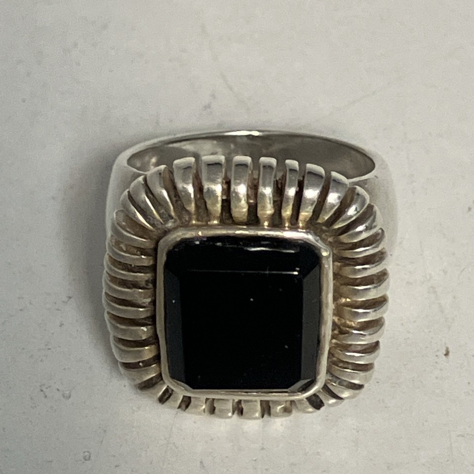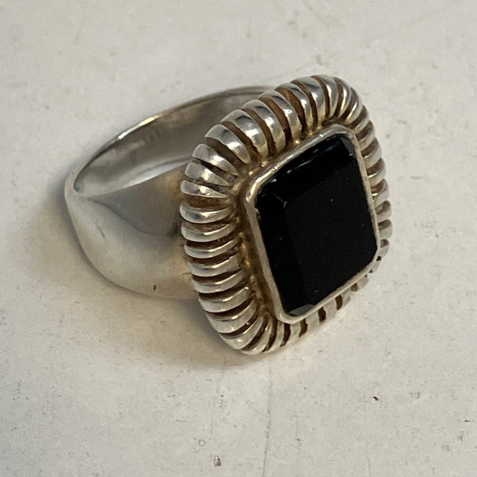 - Sterling Silver .925 Square Black Onyx Signed JM Thailand Size 8 Ring 14g