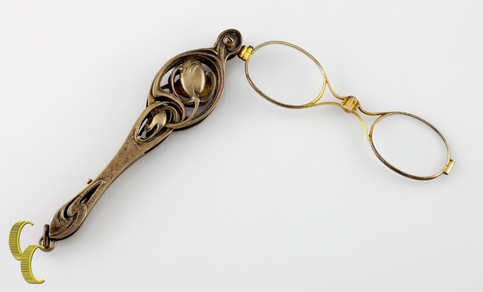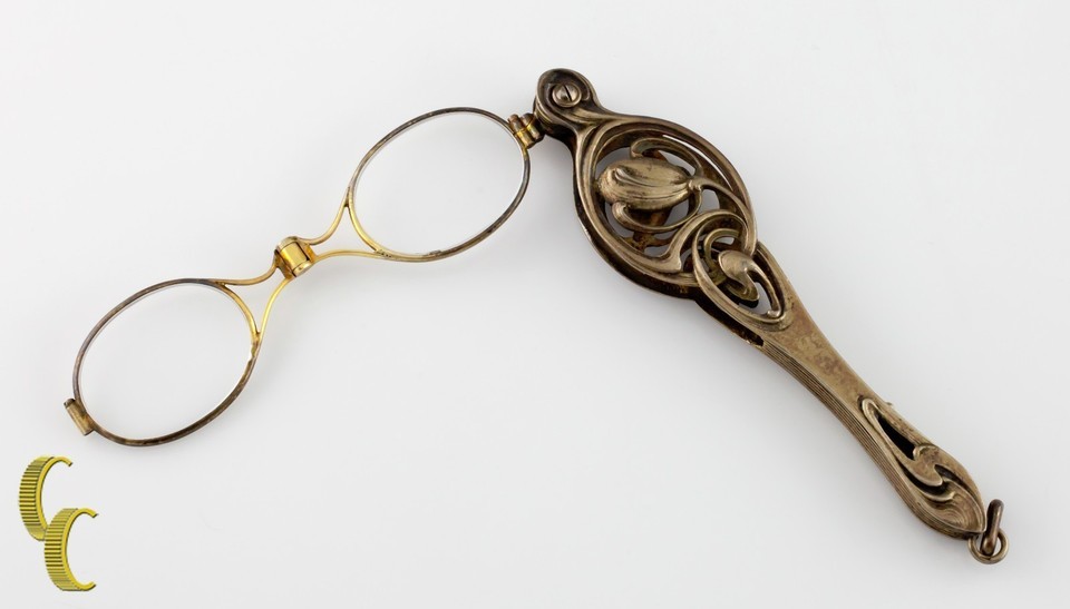 - Sterling Silver Antique Ornate Lorgnette Feather Loaded Eyeglasses All Origin...