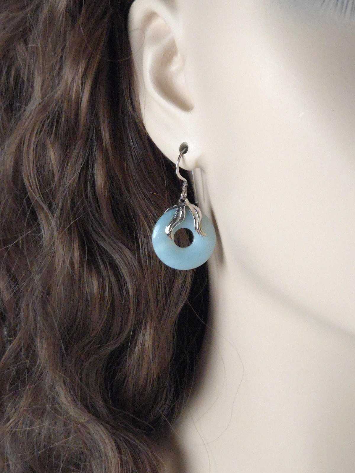 - Sterling Silver & Blue Lucite Donut Drop Earrings