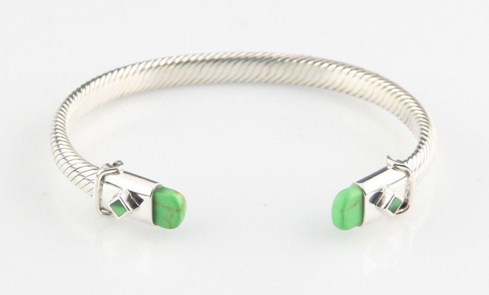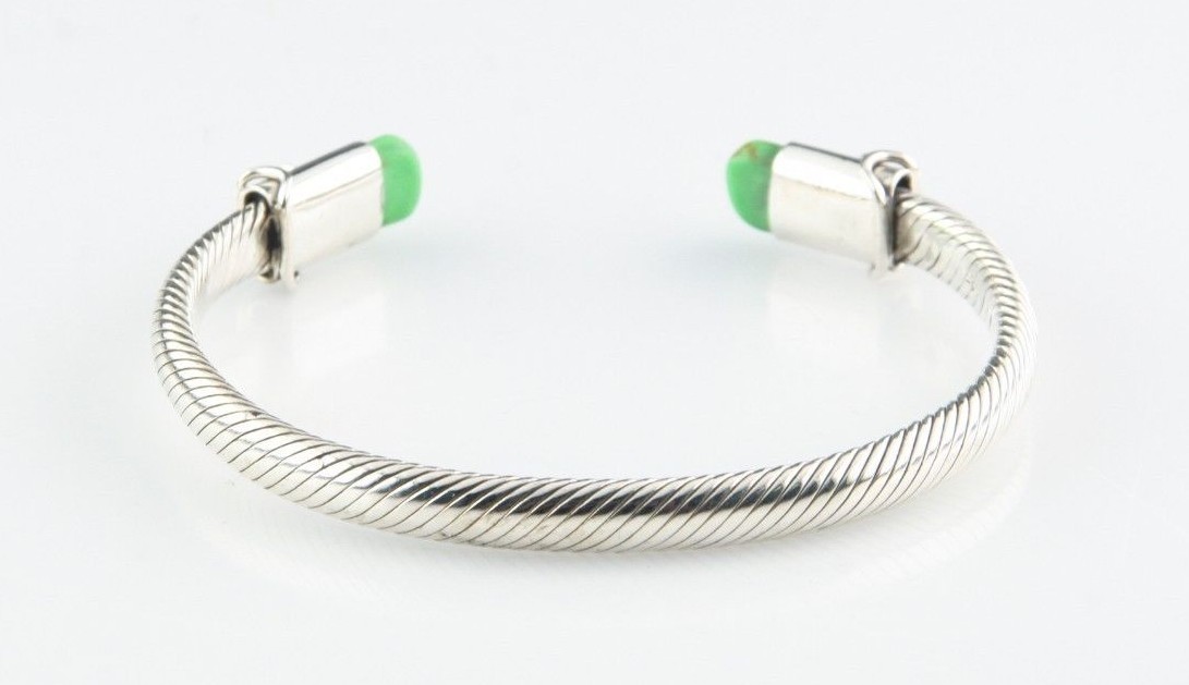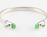 - Sterling Silver Cable Cuff Bracelet w/ Green Accents 7" Long 6 mm Wide 28.7 g