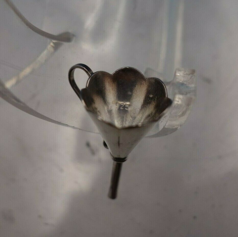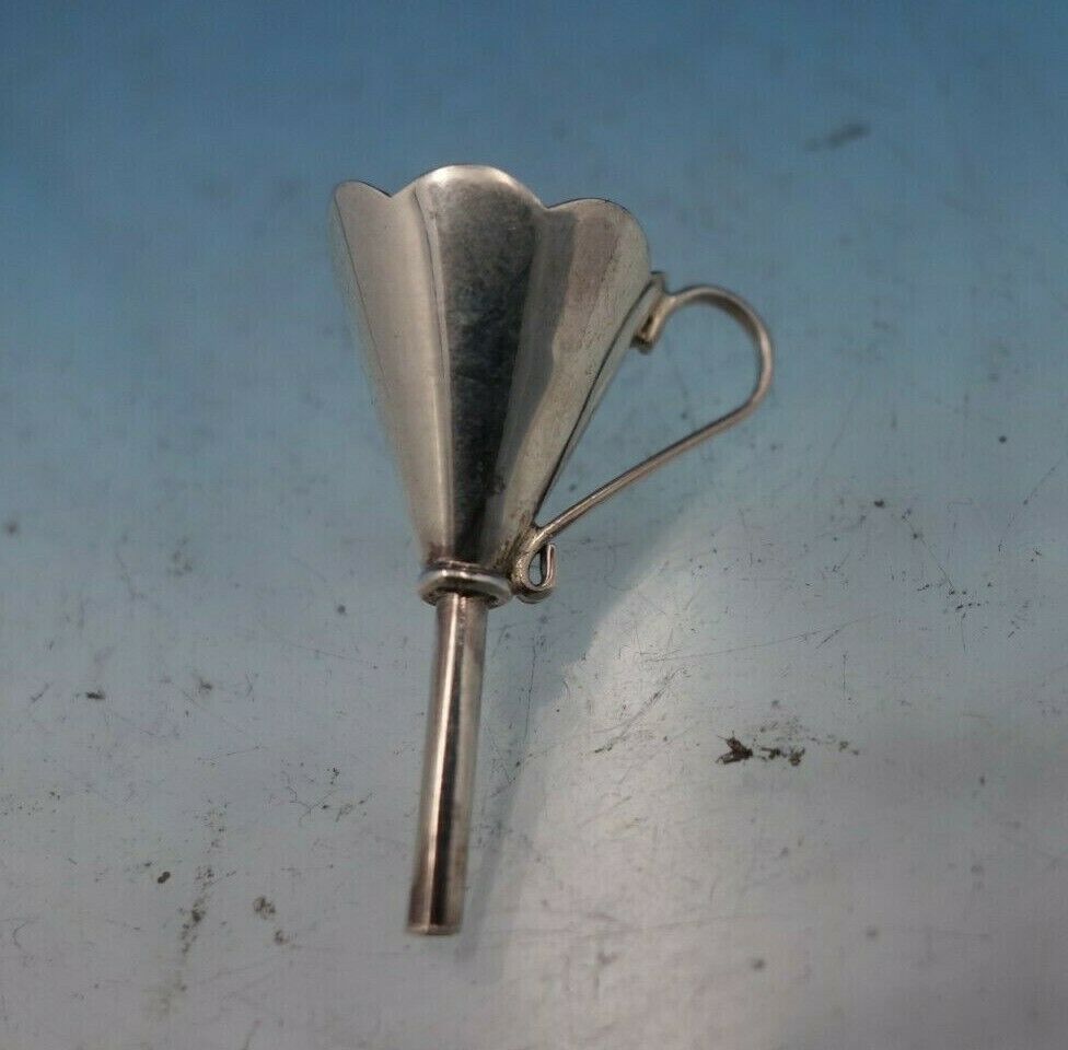 Lovely sterling silver funnel for perfume with scalloped edge (maker unknown). This funnel measures 1" x 3/8" and weighs .06 troy ounces. It is not monogrammed and is in good vintage condition. Pretty!