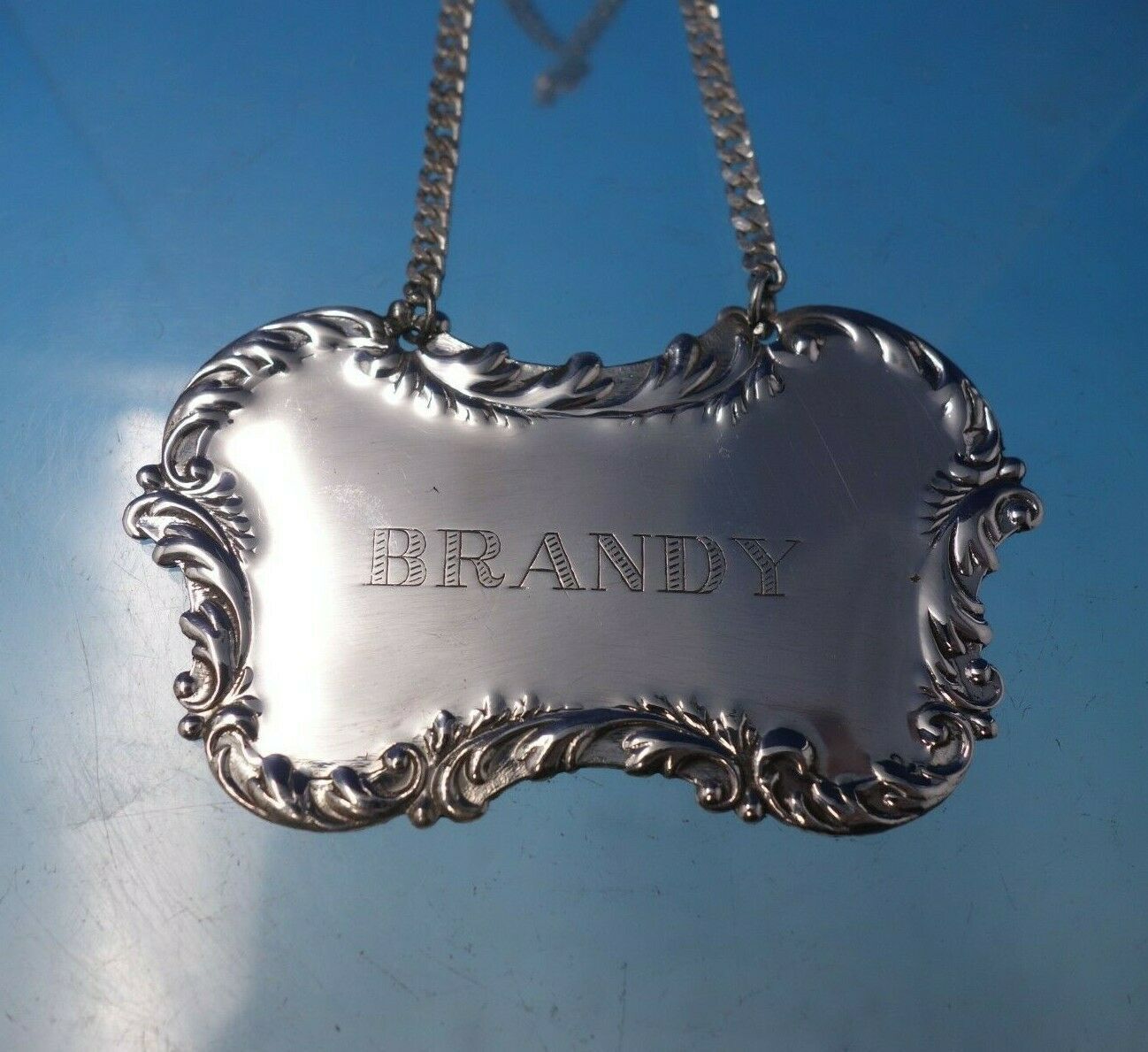 - Sterling Silver Liquor Label "Brandy" Rococo Style #350 2 3/4" x 1 5/8" (#5042)