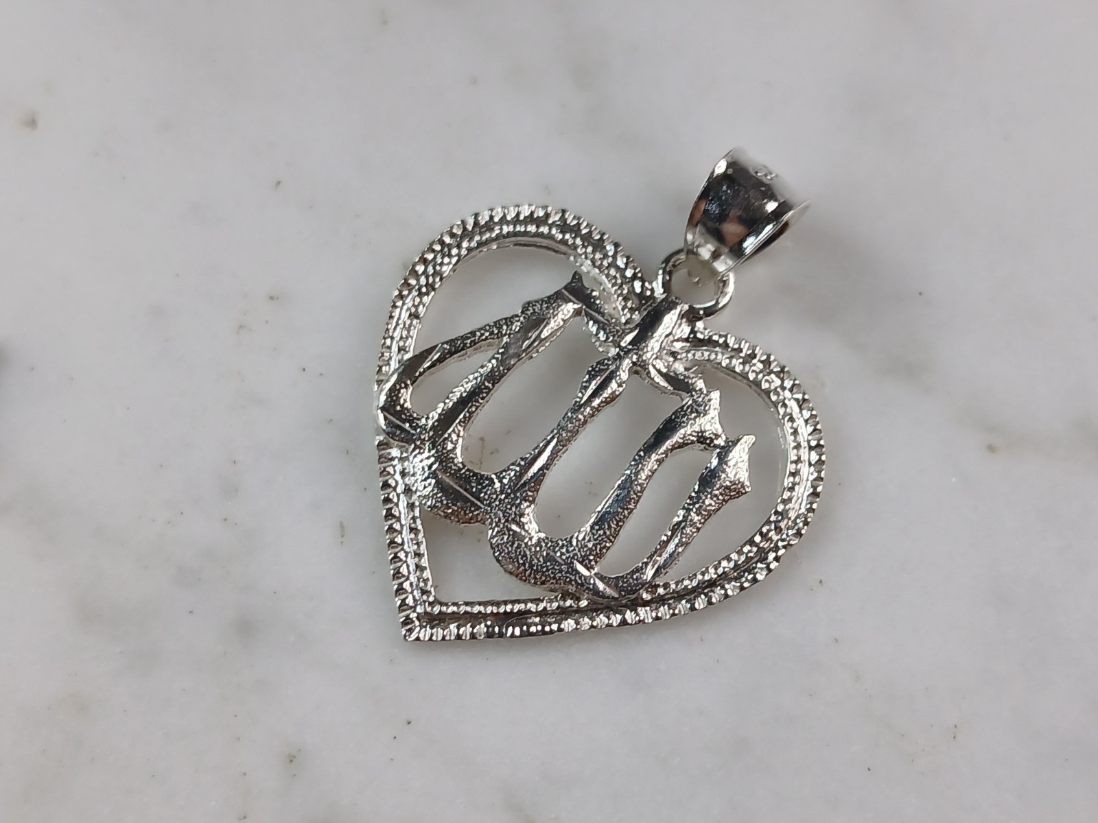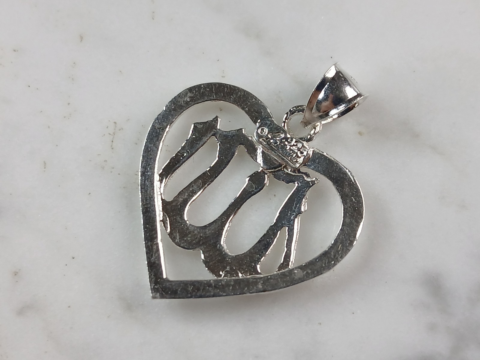 - Sterling Silver Religious Muslim Allah Heart Pendant Necklace 4.4g E4698