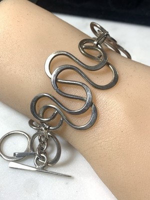 - Sterling Silver Toggle Clasp Bracelet 7.5”-8.5”