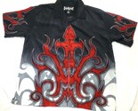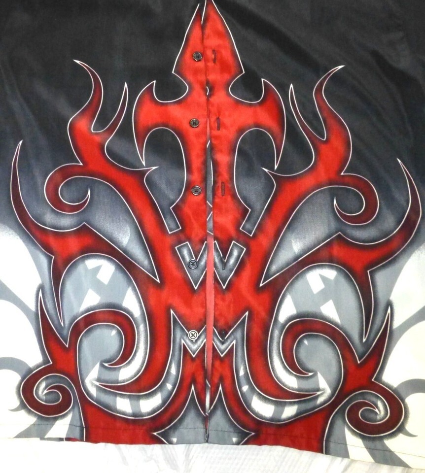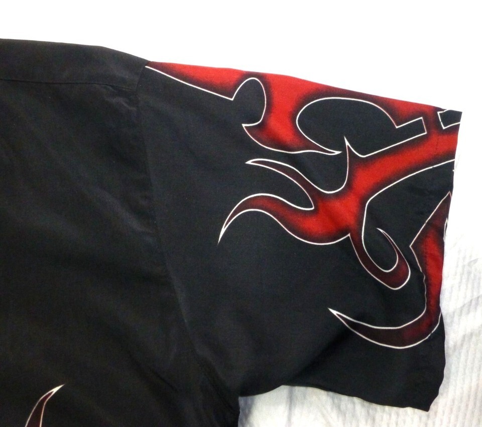 - Steve & Barrys Club Shirt Red Tribal Flames Black Button-Up Short Sleeve M...